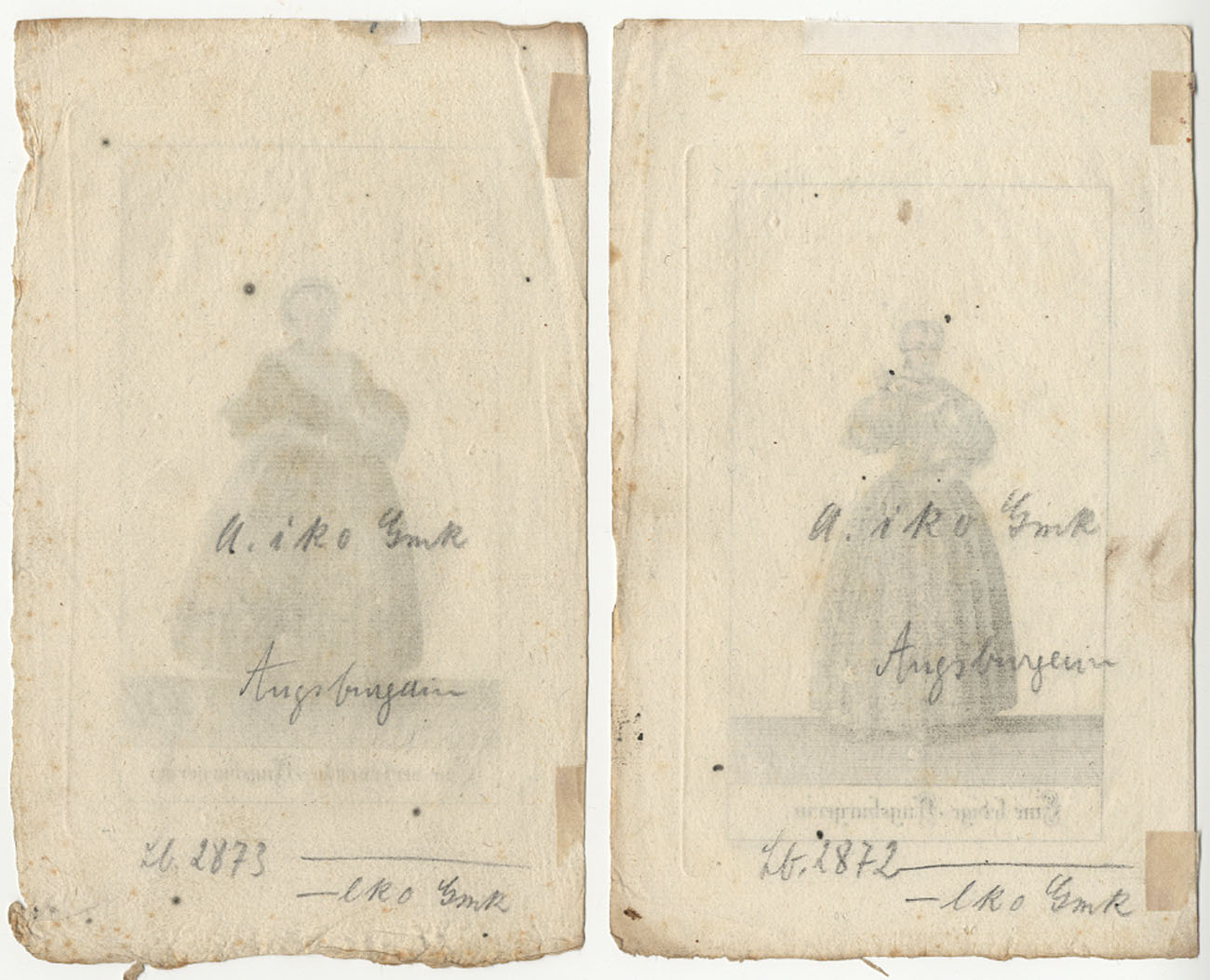 Rückseitig alte Bleistiftvermerke sowie Reste säurefreier Montagestreifen (Filmoplast),